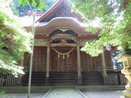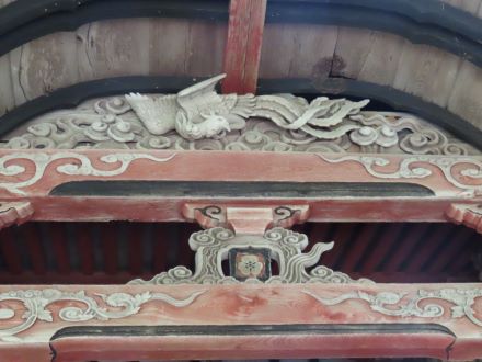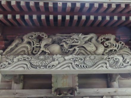 大皇神社境内に鎮座し、単なる境内社ではなく、ちゃんとした社格があり「村社」。向拝したの木鼻の獅子、蛙股の龍は見事な彫刻。