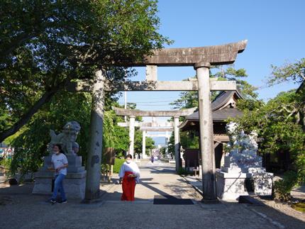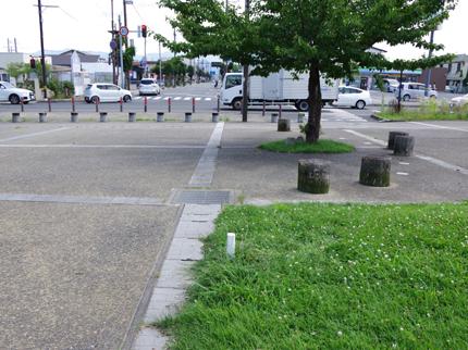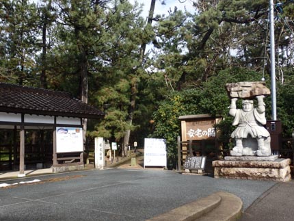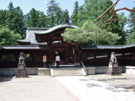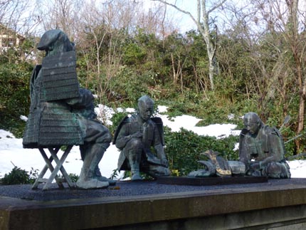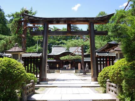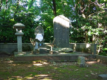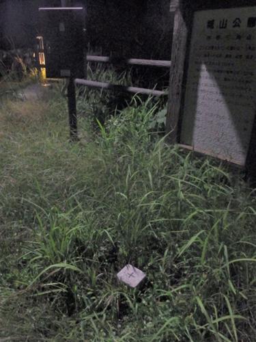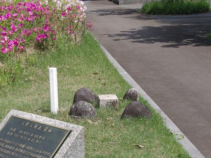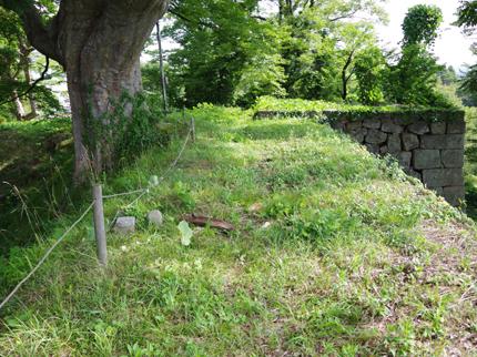 城跡に鎮座する上杉神社参道入口脇、芝生の中