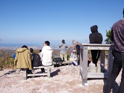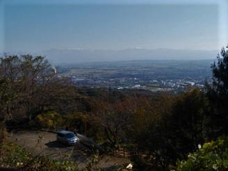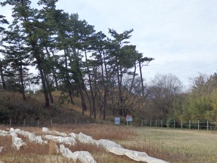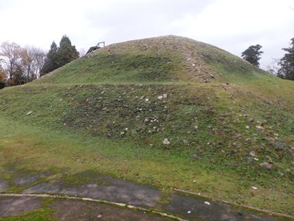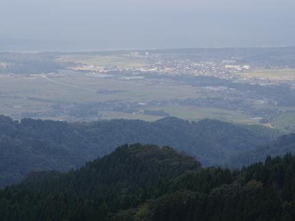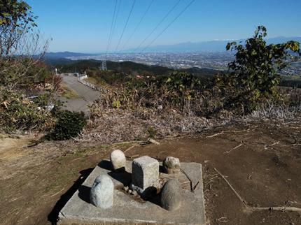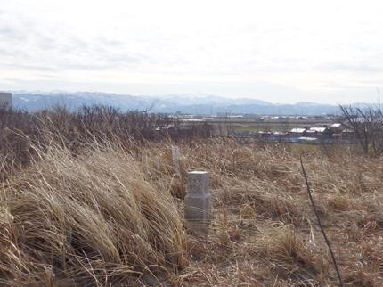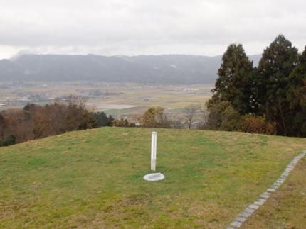 1号古墳の上に三角点、邑知地溝帯を見下ろす