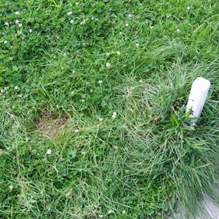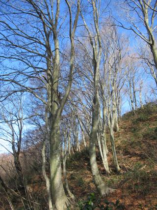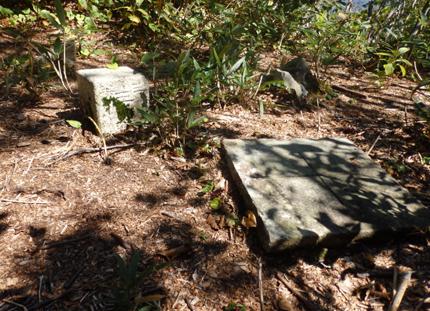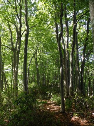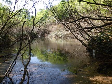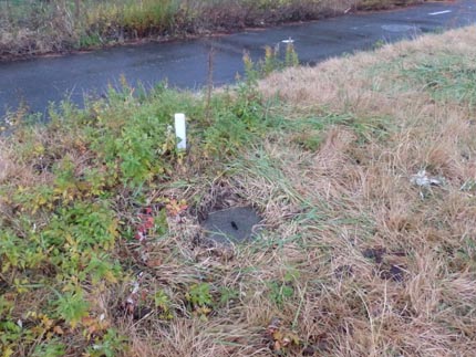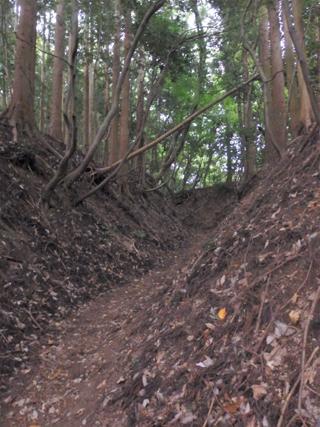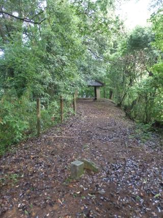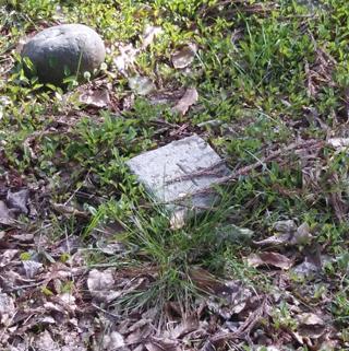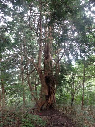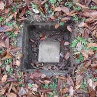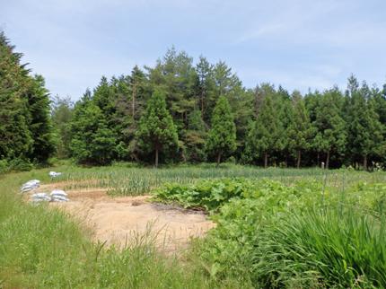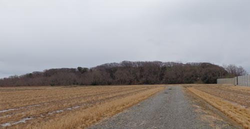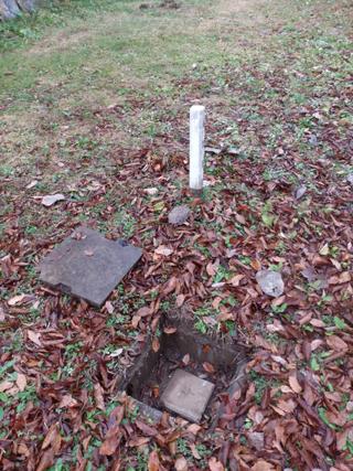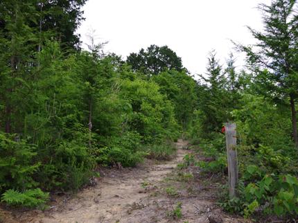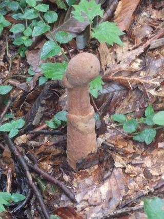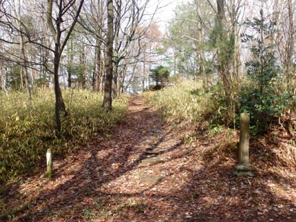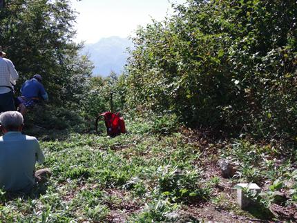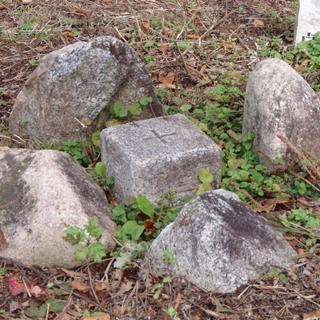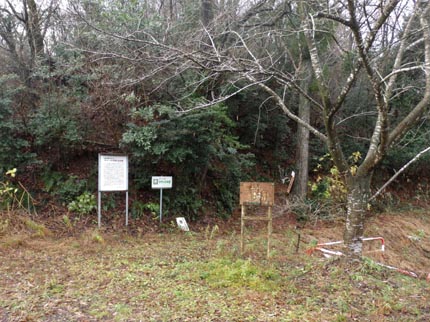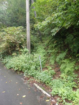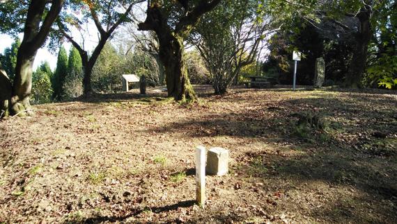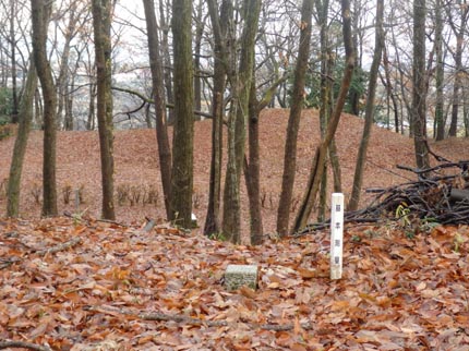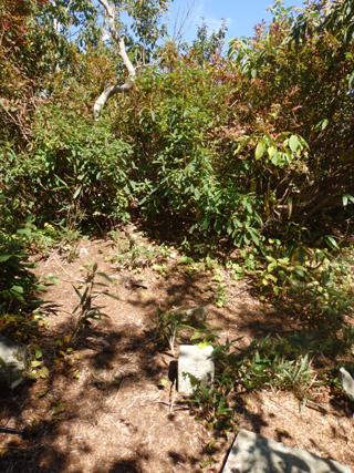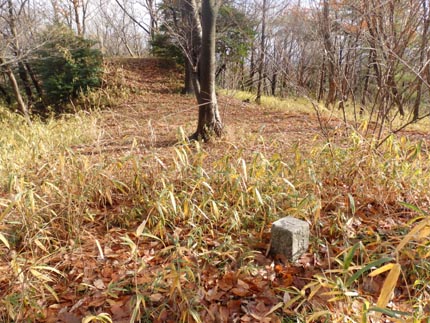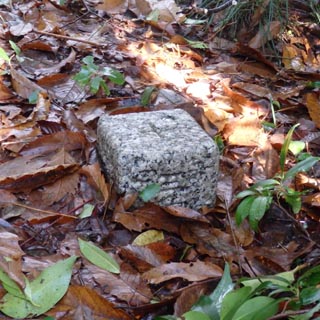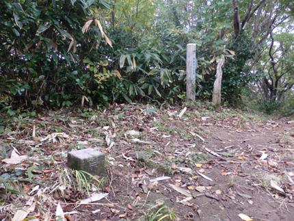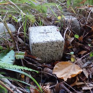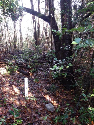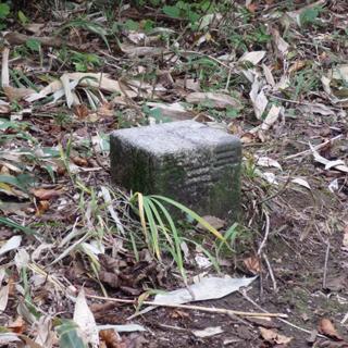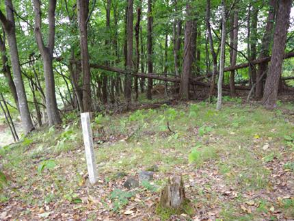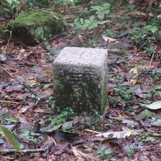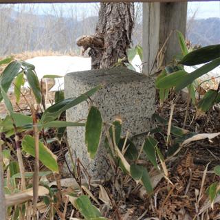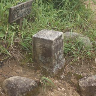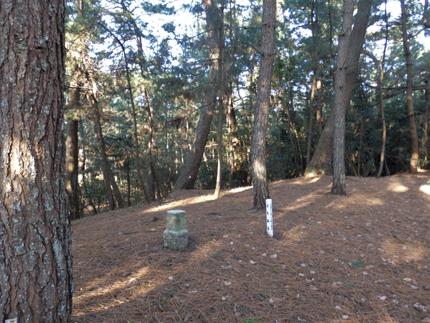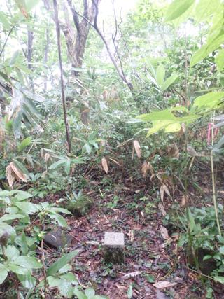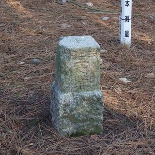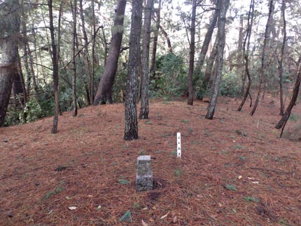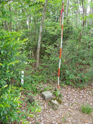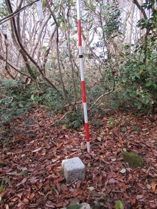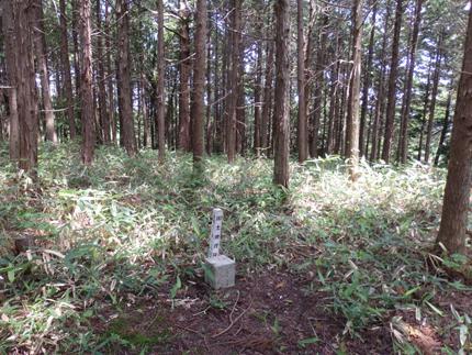 開拓地の端、ヒノキ植林地の中、地元呼称は「三角点」