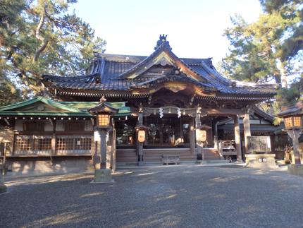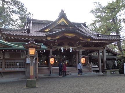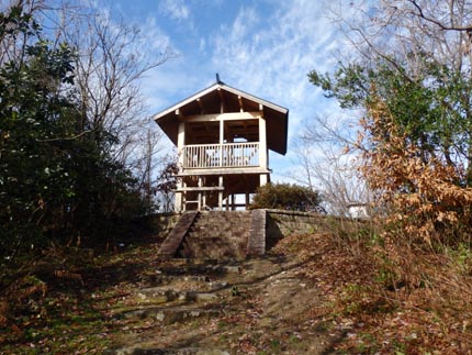 山頂一帯は石垣の金山城址、天守跡に新田神社が鎮座
