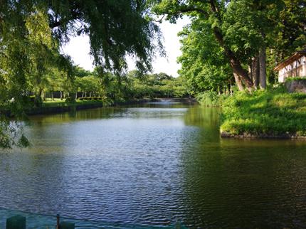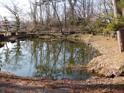 堀の外側に三角点、城跡には庄内神社が鎮座