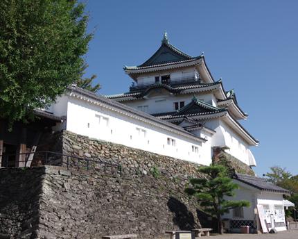 梯郭式平山城の和歌山城、青空に映える漆喰