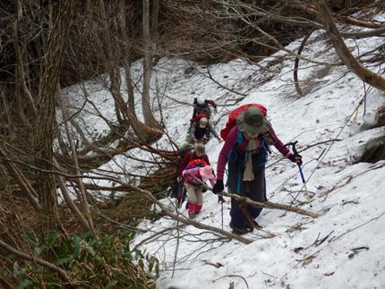 瀬波川ナメリ谷コースを登る、快晴の白山を展望